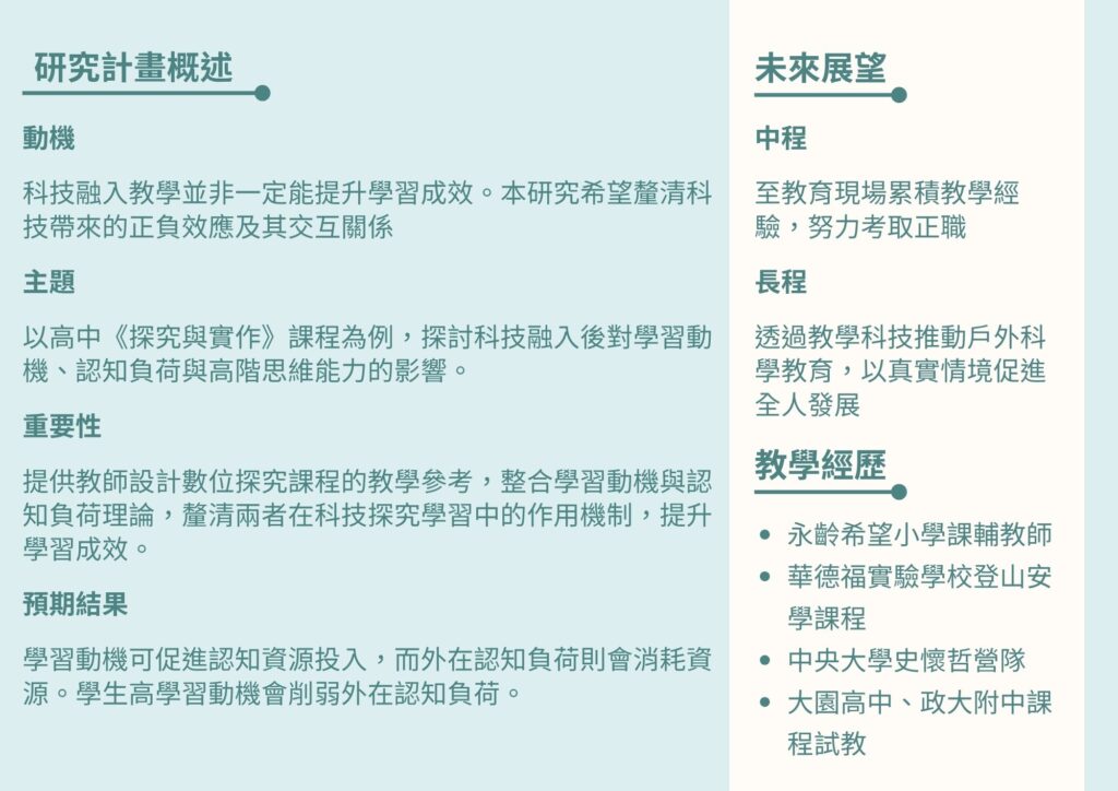 - 你認為數位工具如何幫助科學學習呢?(研究計劃的問題)